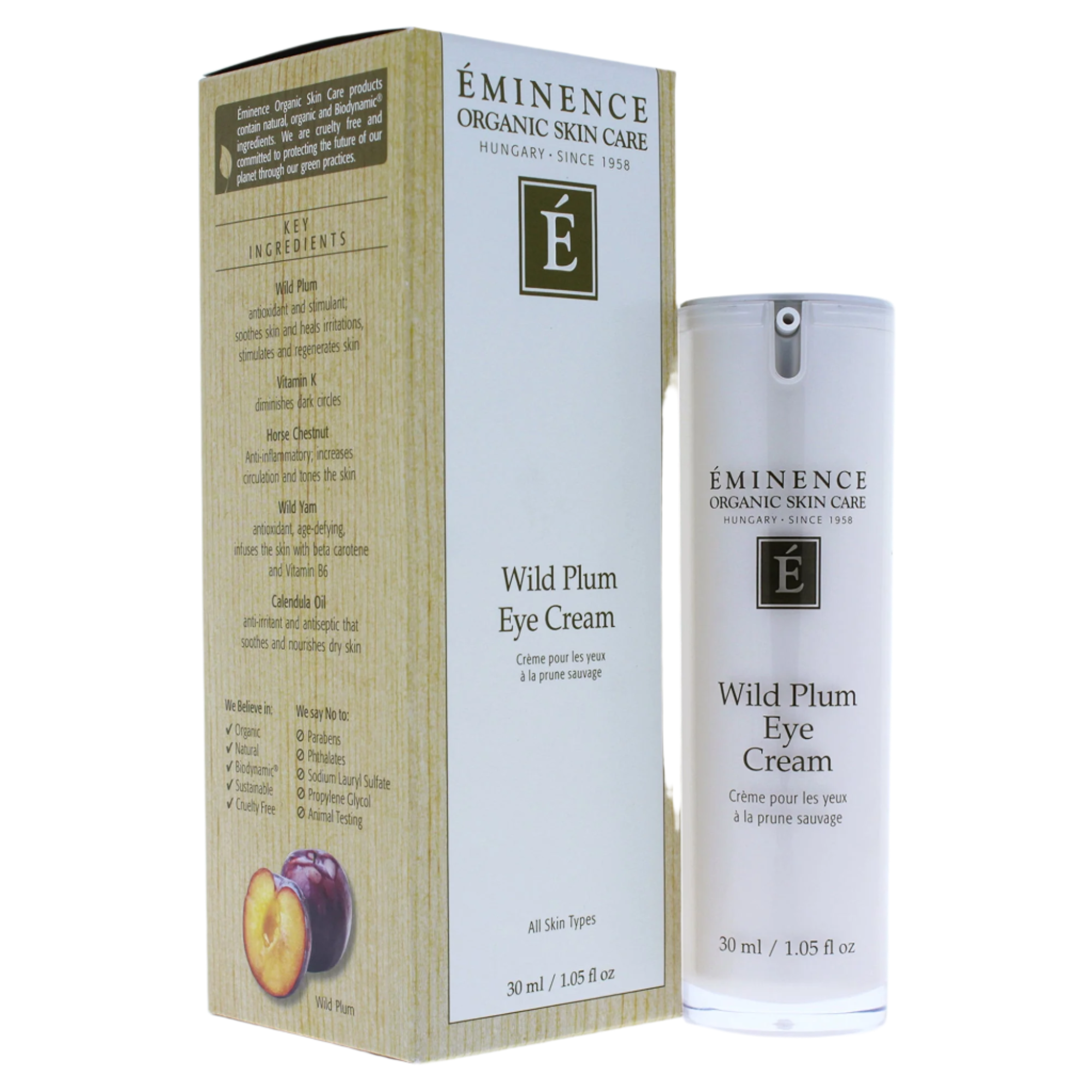 The skin around the eye area will appear brightened and re-energized. It reduces the look of dark circles around the eyes with iron-rich wild plum. It is suitable for all skin types.